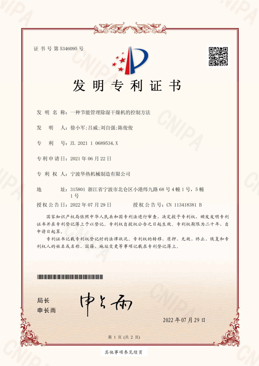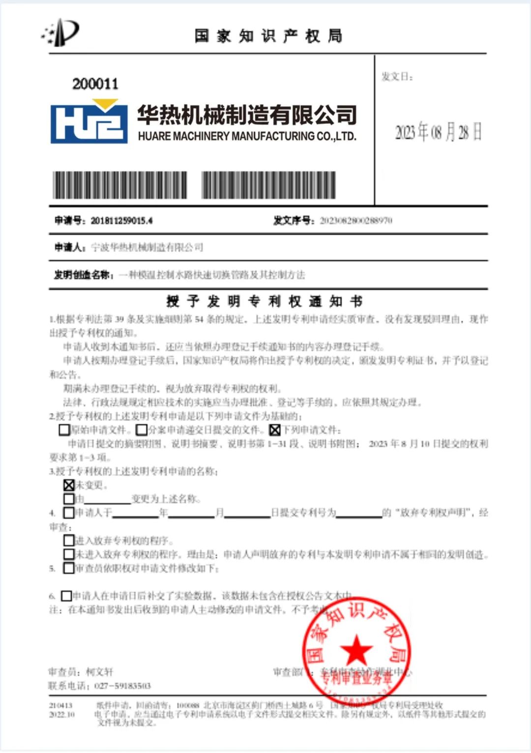 华热机械目前已获颁实用新型20余项,计算机软件著作权4项,发明专利3项,此次又获得“一种模温控制水路快速切换管路及其控制方法”发明专利,近年来,华热机械已逐步在橡塑辅机技术领域筑造出属于自己的核心自主知识产权。